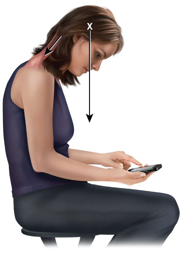 위 사진 처럼 스마트폰이나 컴퓨터를 할 때에, 목이 앞으로 길게 빠지며 자연스럽게 힘이 풀리며 등이 굽게 됩니다.