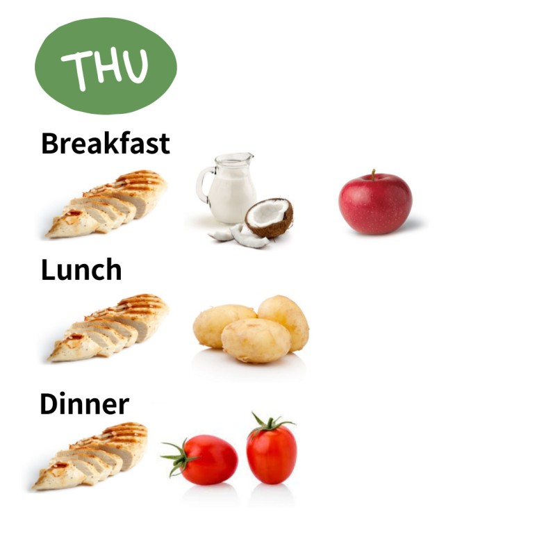 닭가슴살 100g / 감자2개 / 방울토마토100g / 브로콜리반개 / 오이한개