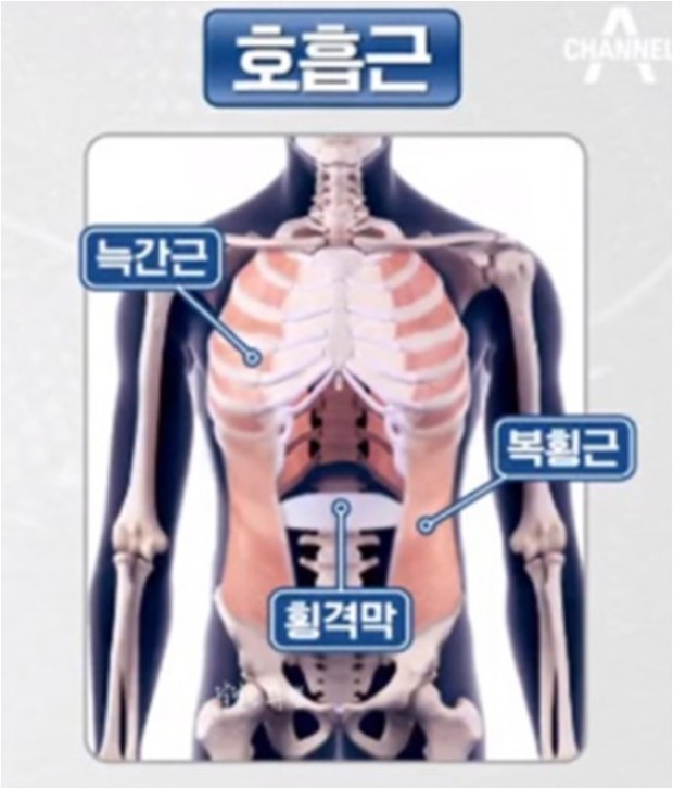 특히 폐를 감싸고있는 늑골(흉곽) 주위에 많은 호흡근들이 감싸고 있어요